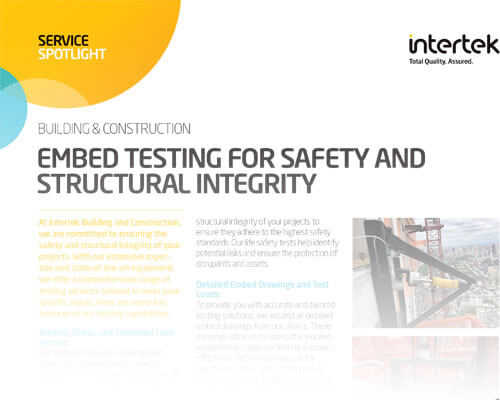 At Intertek Building and Construction, we are committed to ensuring the safety and structural integrity of your projects. With our extensive expertise and state-of-the-art equipment, we offer a comprehensive range of testing services tailored to meet your specific needs. Here are some key features of our testing capabilities: