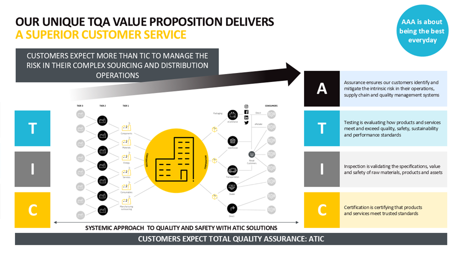 Our ATIC solutions ensure an end-to-end assessment of the risks within supply chains, ensuring superior customer service to clients. The whole ATIC offering assesses internal and third-party supply chain risks while also providing our Testing, Inspection and Certification services.
